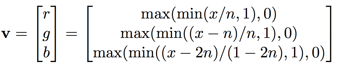- Transformation the magnitude to RGB colored value (3-dimensional vector)