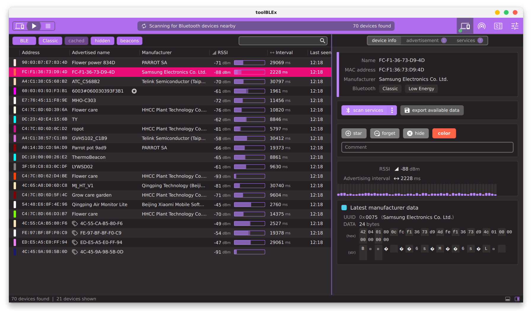- device scanner (BLE and classic)