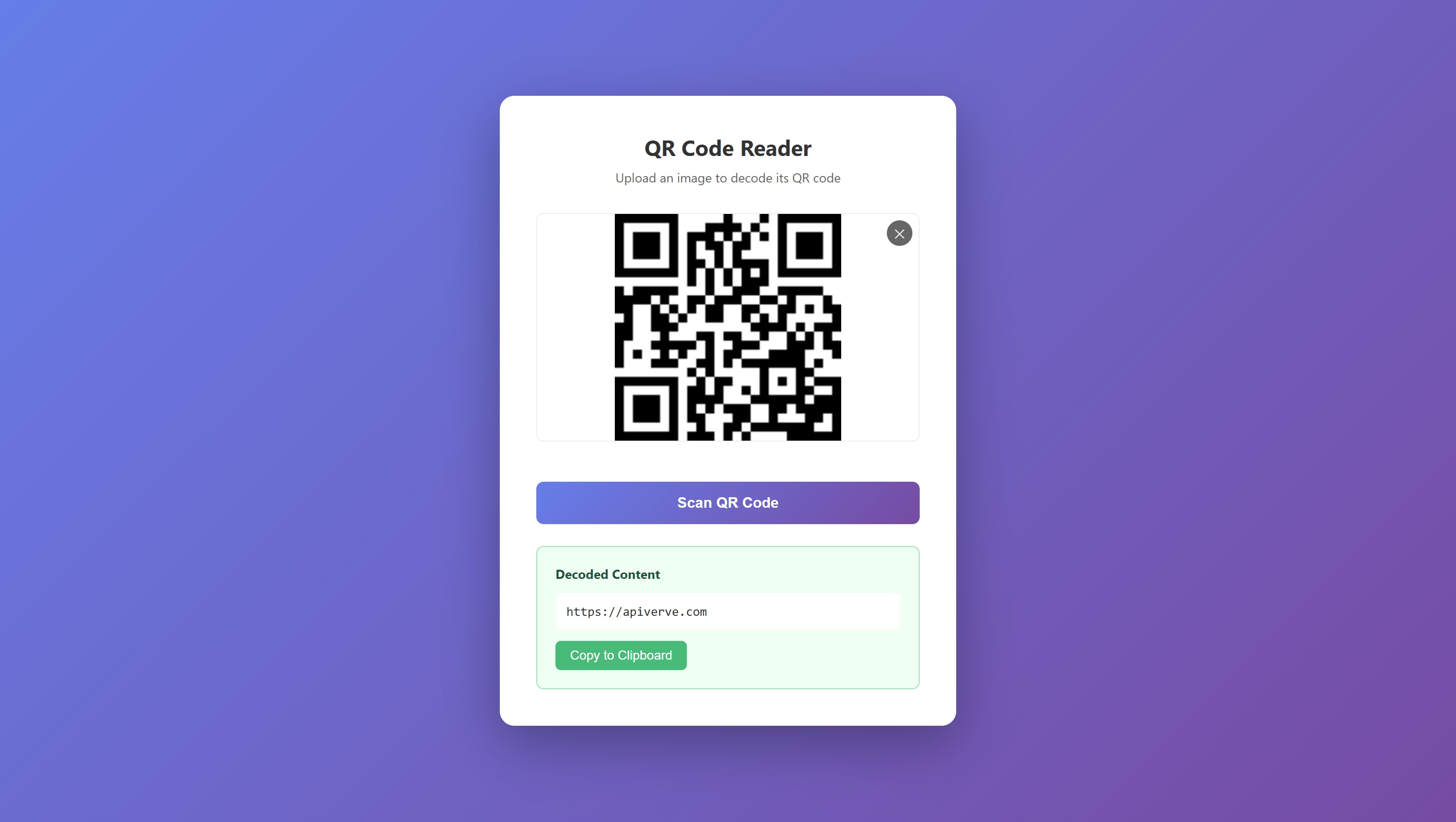 });Endpoint: POST https://api.apiverve.com/v1/qrcodereader