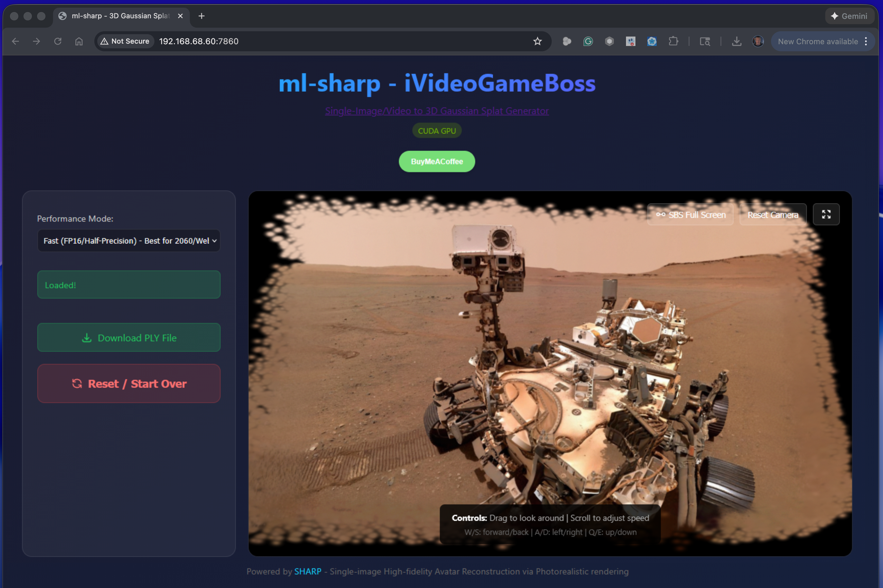 I've added WebUI, FP16 Support, Webcam support, SBS 3D glasses support, Video Extract, Realtime .ply playback, W A S D navigation, Full screen