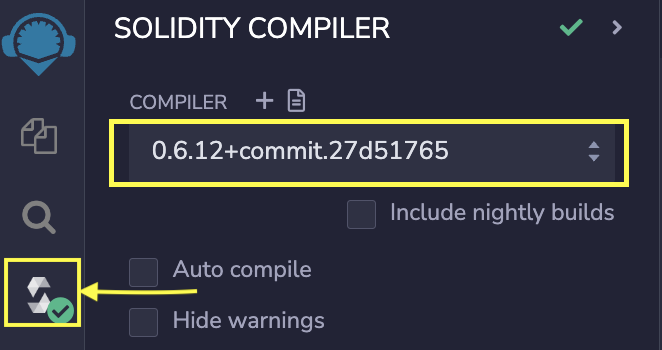 0.6.12. In Remix, select this version in theCompilerdropdown. -