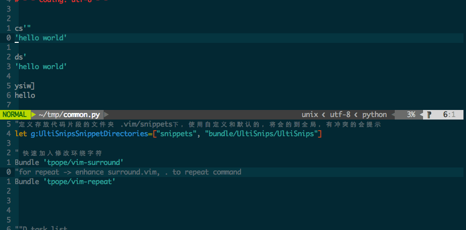 python,golang以及将要入坑的ruby, 偶尔写写js/jquery, 但是主体配置基本是通用的. 可以根据语言体系自己加配置(vimrc.bundles) -