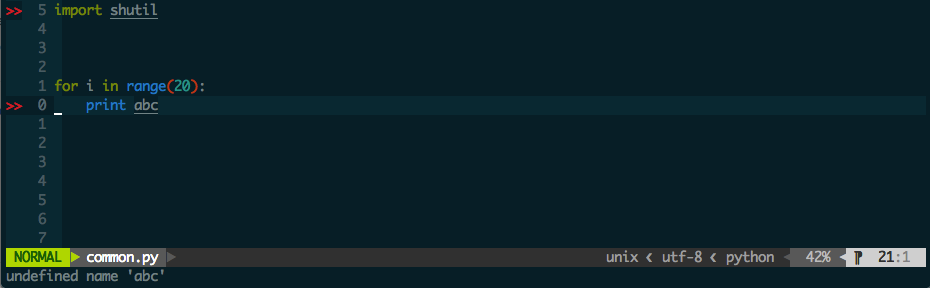 虽然这个的作者推荐使用syntastic,但是这个插件对于pythoner还是很需要的