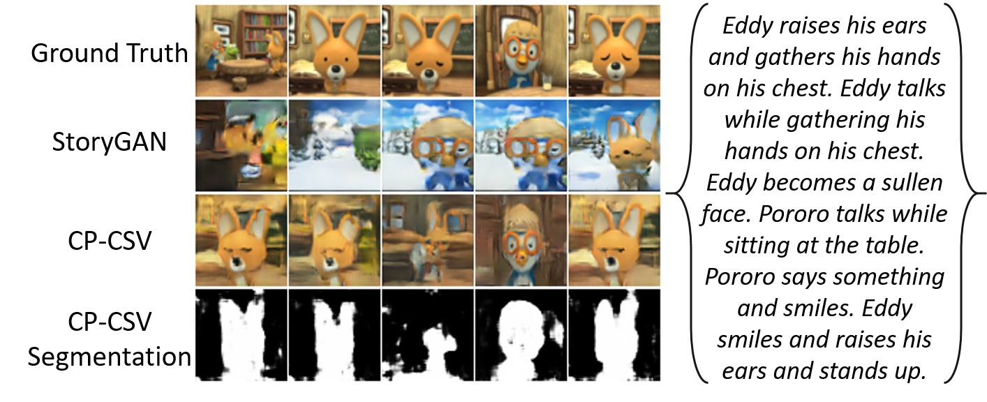 CP-CSV effectively learns to visualize the story by three critical modules: story and context encoder (story and sentence representation learning), figure-ground segmentation (auxiliary task to provide information for preserving character and story consistency), and figure-ground aware generation (image sequence generation by incorporating figure-ground information). Moreover, we propose a metric named Frechet Story Distance (FSD) to evaluate the performance of story visualization. Extensive experiments demonstrate that CP-CSV maintains the details of character information and achieves high consistency among different frames, while FSD better measures the performance of story visualization.