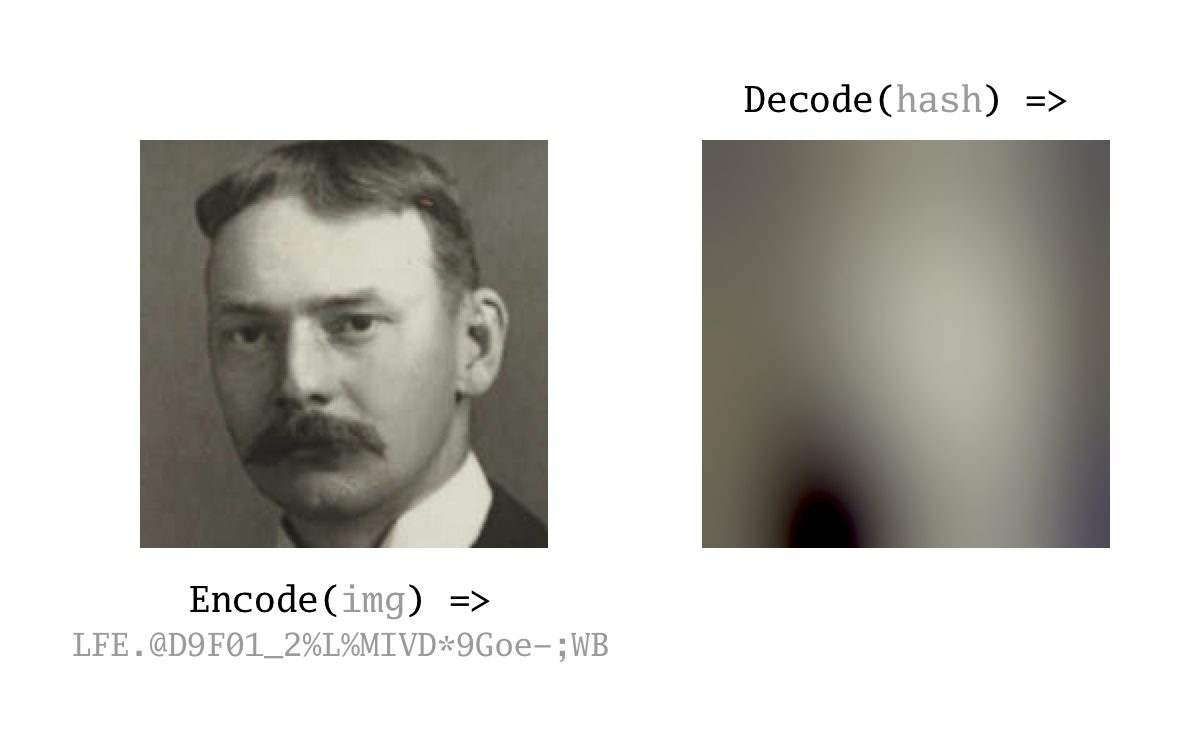 Blurhash is an algorithm written by Dag Ågren for Wolt (woltapp/blurhash) that encodes an image into a short (~20-30 byte) ASCII string. When you decode the string back into an image, you get a gradient of colors that represent the original image. This can be useful for scenarios where you want an image placeholder before loading, or even to censor the contents of an image a la Mastodon.