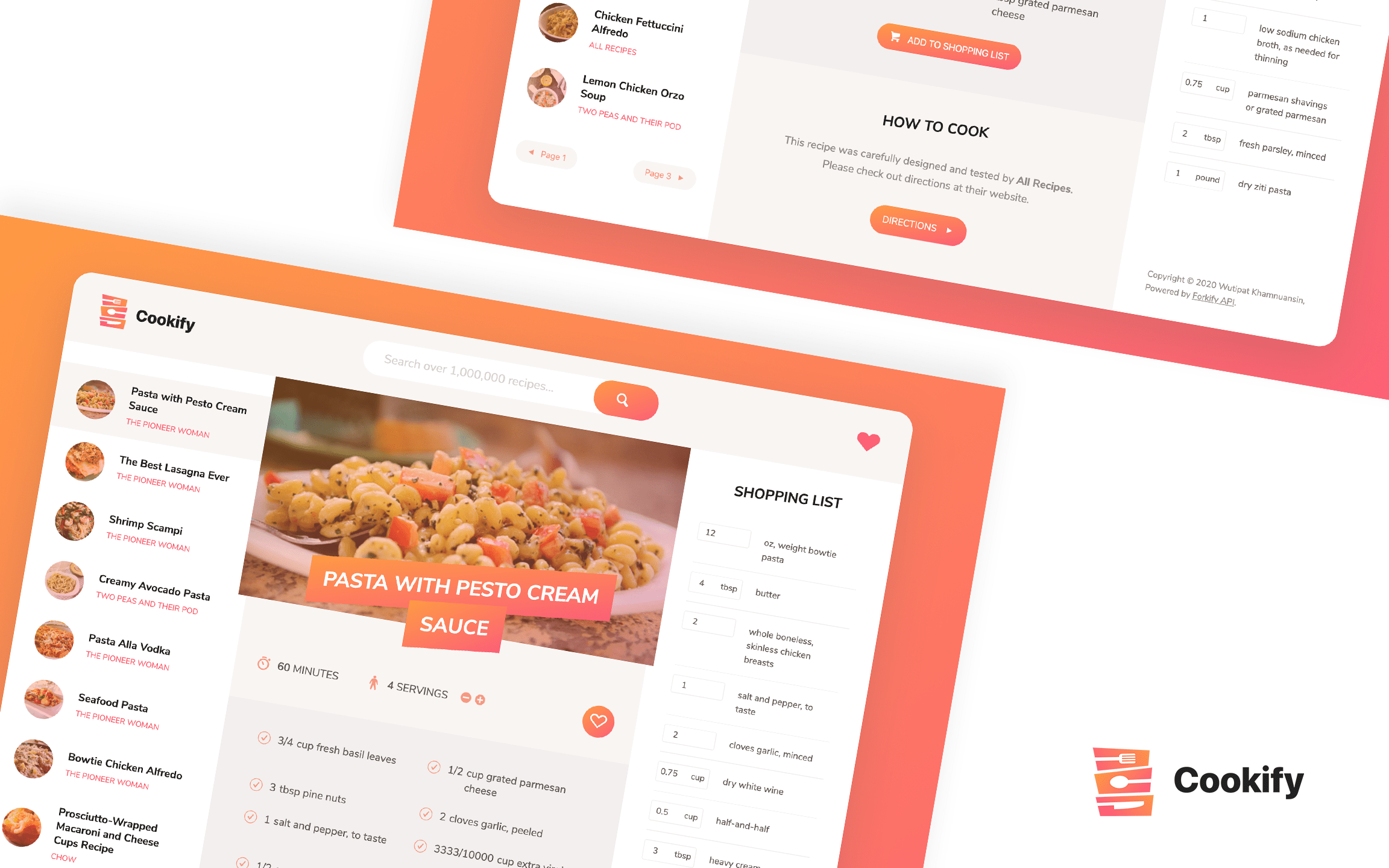 Cookify is your on-the-go app for any delicious food recipes. Over 1,000,000 recipes now at your fingertips. An app which serves as your own cookbook, an incredible search tool and a personalized shopping list.