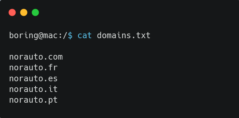 -f FILE, --file FILE Specifies a file with one domain per line to be scanned. Example: -f domains.txt