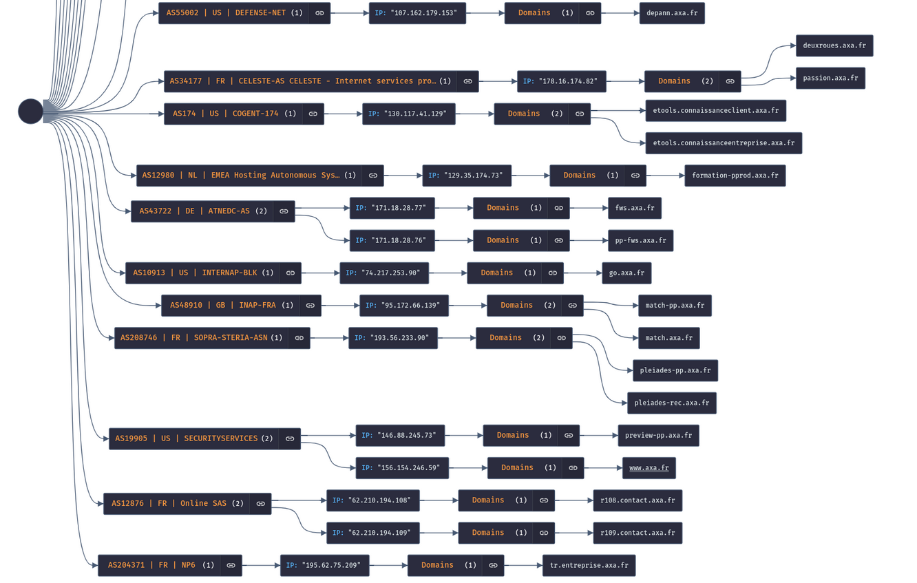Recognition tool for sub-domains, IPs and ASNs linked to a domain