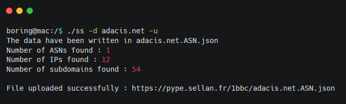 If, for example, you're running the tool from a VPS and want to easily retrieve the .JSON file from your computer, just add the -u argument and it will automatically be temporarily hosted on https://pype.sellan.fr/ (Free, fast, log-free file hosting) as soon as the scan is complete.