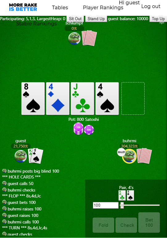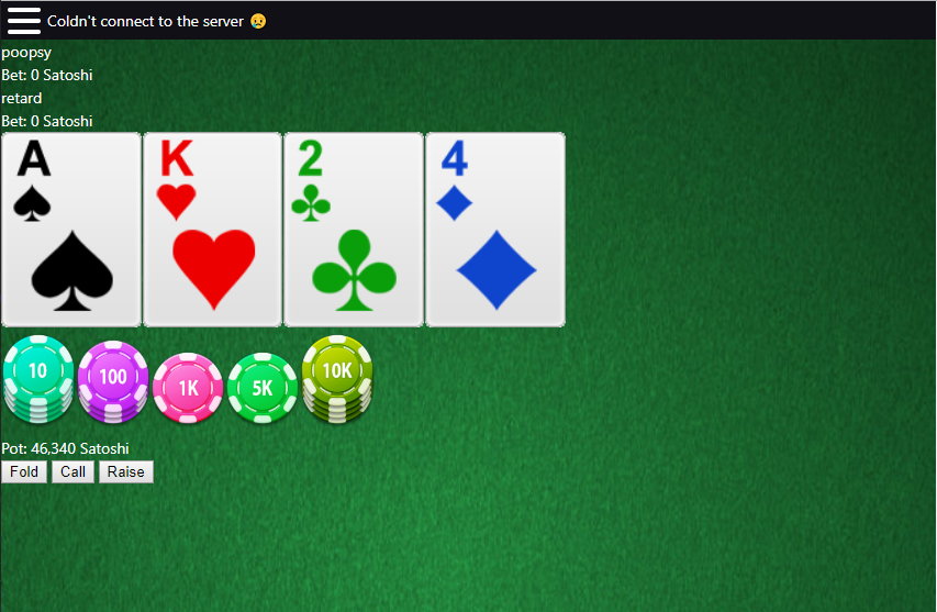 A poker game made with Svelte. Here is a test server. It uses a proprietary backend, but unfortunately it never got finsihed.