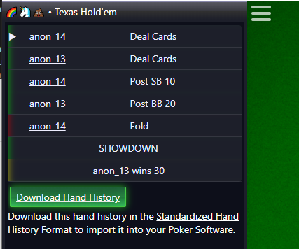 - Download hand histories in Standardized Hand History Format