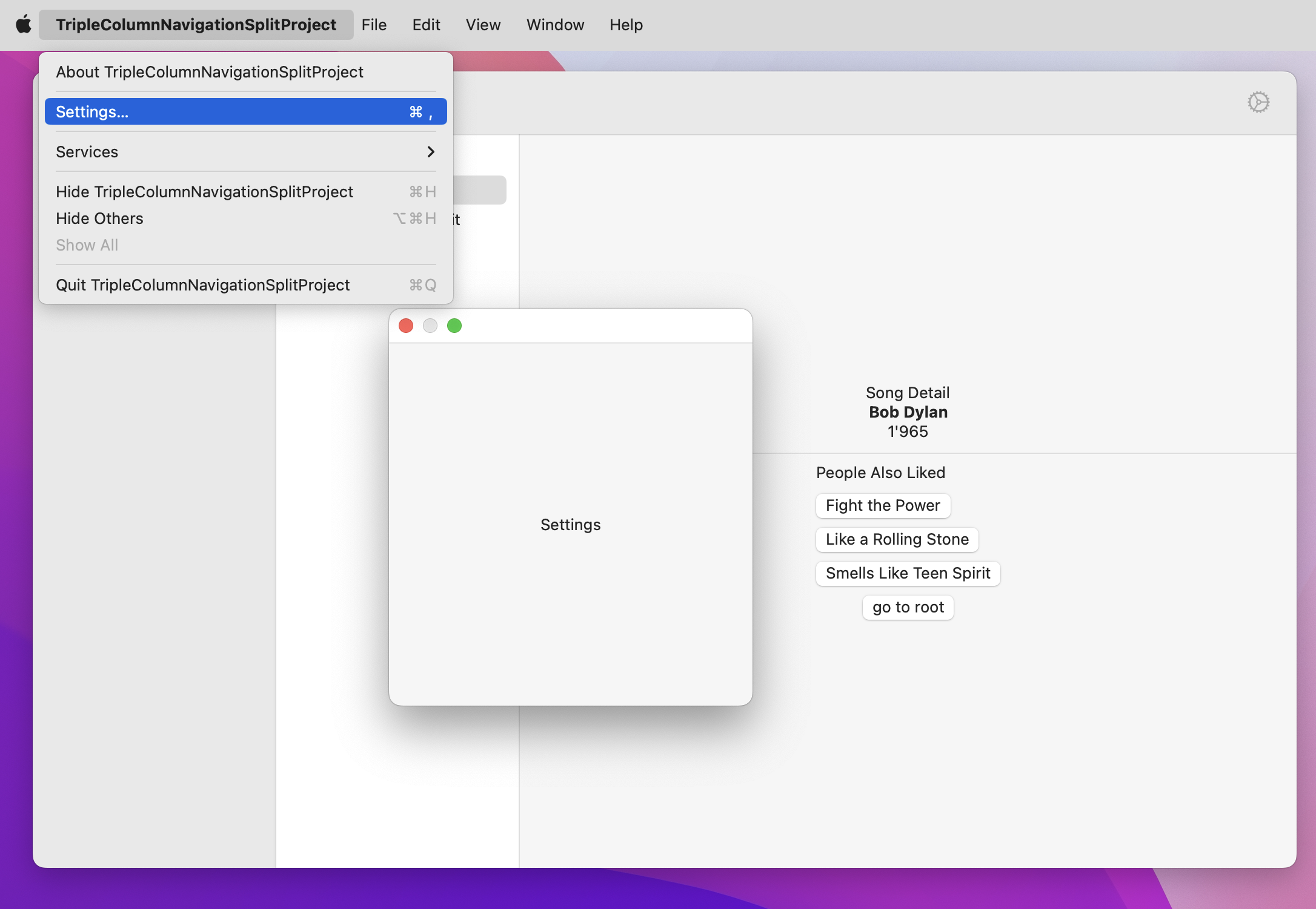 TripleColumnNavigationSplitProject Expample Project for NavigationSplitView with 3 columns in SwiftUI for iOS 16 and macOS 13 iPhone iPad mac on macos I used a Settings Windowgroup
