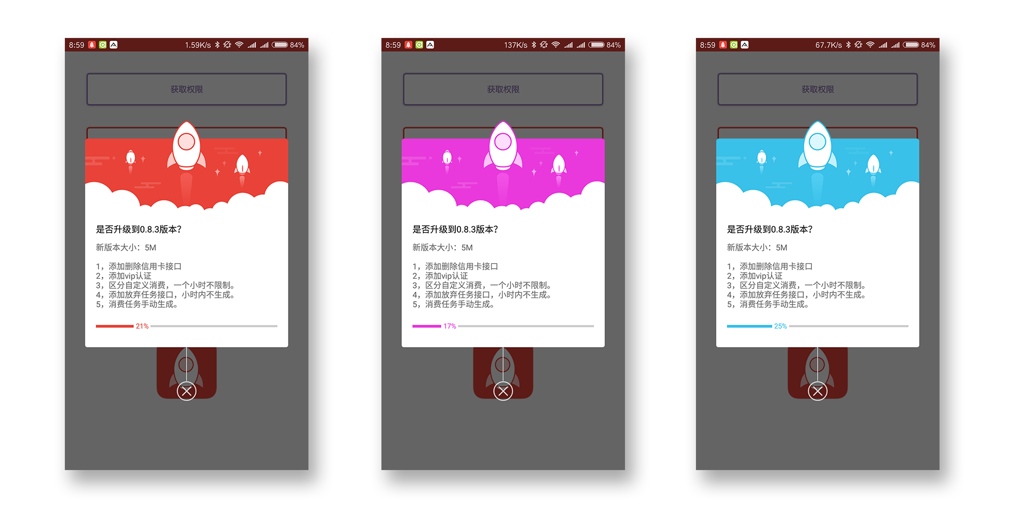 updateApp(mUpdateUrl, UpdateAppHttpUtil()).update()进度条使用的是代码家的「NumberProgressBar」