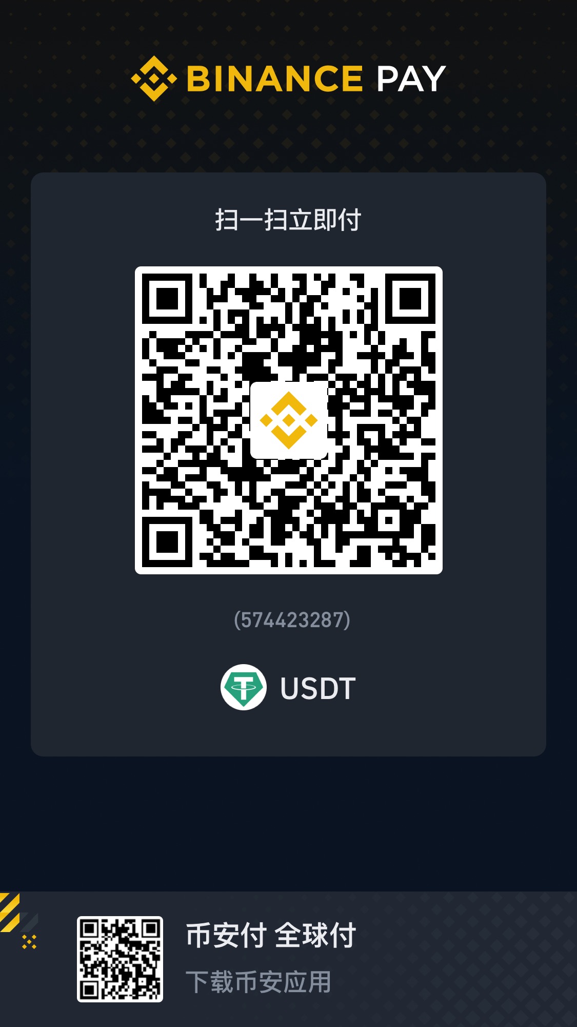 | 支付宝 | 微信 | 币安(USDT) |