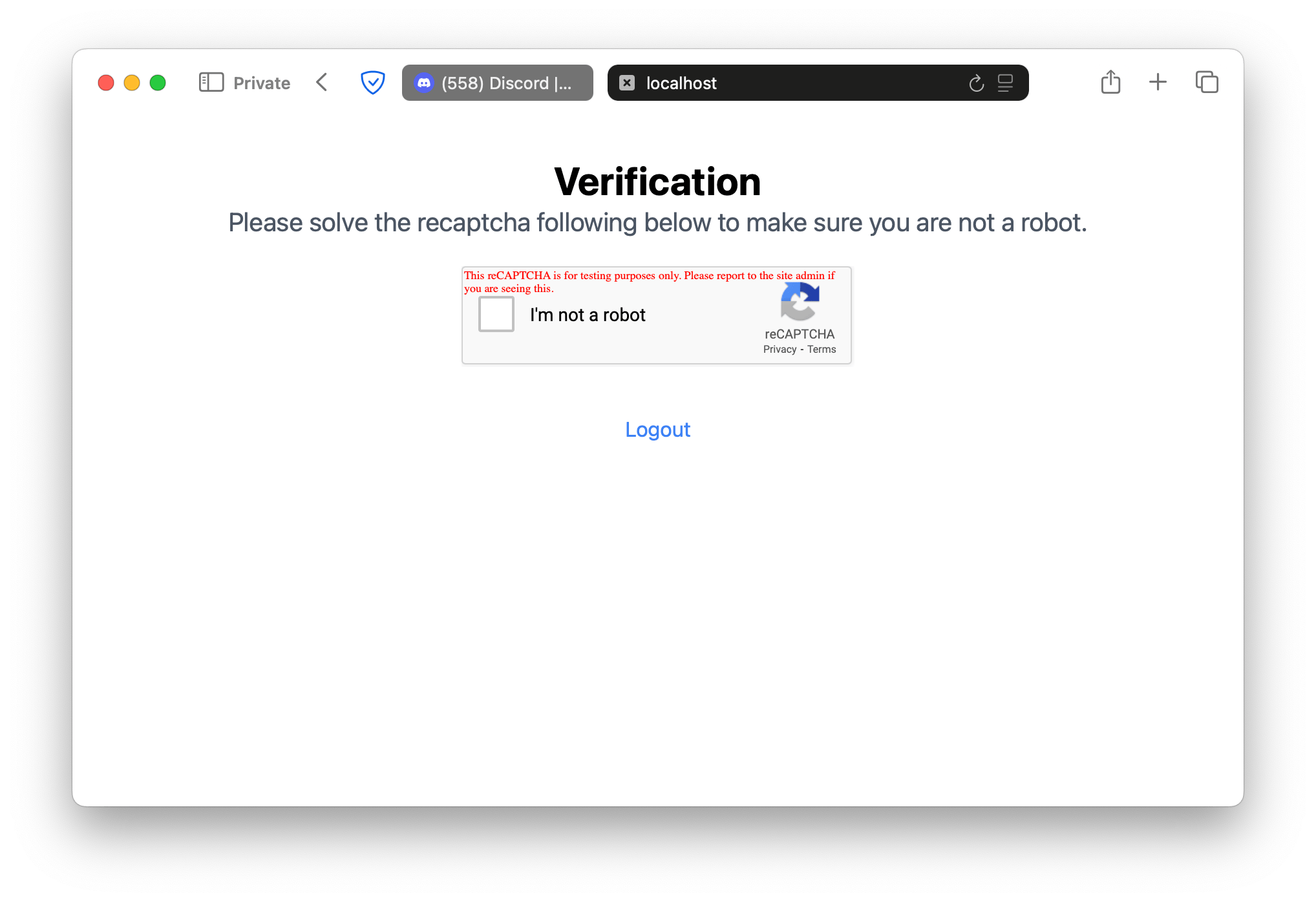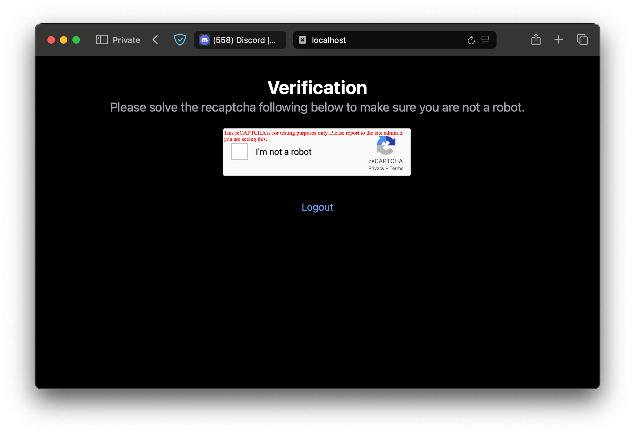 PORT- The port to run the server on (default:3000)TOKEN- The token of your Discord bot (Bot -> Token)CLIENT_ID- The client ID of your Discord application (Oauth2 -> General -> Client ID)CLIENT_SECRET- The client secret of your Discord application (Oauth2 -> General -> Client Secret)SERVER_ID- The ID of the Discord your server (Right click on the server -> Copy ID)CALLBACK_URL- The URL of the serverhttps://[your domain]/verify(e.g.https://example.com/verify)REQUIRE_VERIFIED_EMAIL- Whether to require a verified email address for the user to pass the captcha (default:false)VERIFIED_ROLE_ID- The ID of the role to give to the user after they pass the captcha (Right click on the role -> Copy ID)