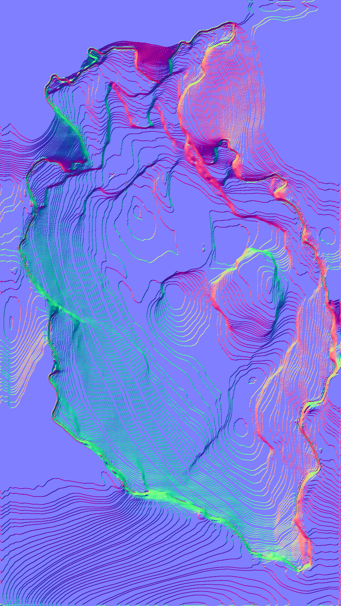 - Build normals (-dx, -dy, 1), normalize to unit length, then map to 8-bit RGB.