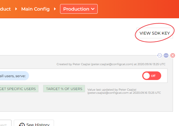 gem install configcatrequire 'configcat'3. Go to the ConfigCat Dashboard to get your SDK Key: