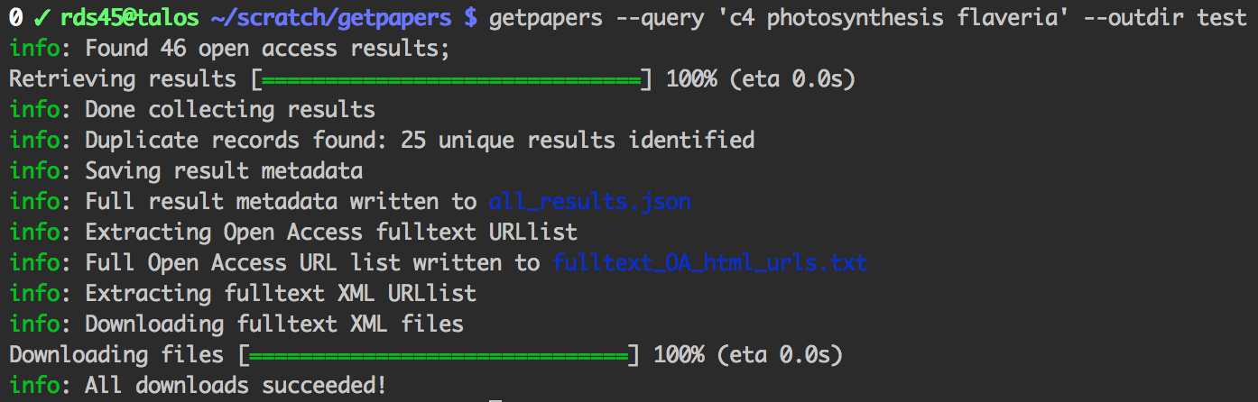 $ npm install --global getpapersUse getpapers --help to see the command-line help: