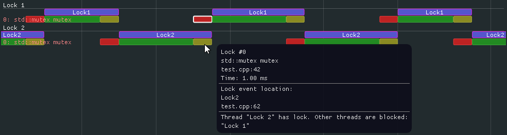To mark a lock (mutex) for event reporting, use the TracyLockable( type, varname ) macro. Note that the lock must implement a Lockable concept (i.e. there's no support for timed mutices). For a concrete example, you would replace the line std::mutex m_lock with TracyLockable( std::mutex, m_lock ). You may use TracyLockableN( type, varname, description ) to provide a custom lock name.