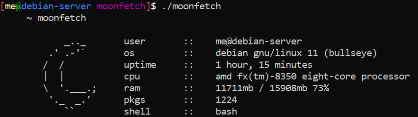 A simple fetch program with an ascii moon