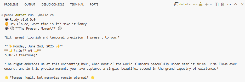 Run AI-powered C# files using Microsoft.Extensions.AI and Devlooped.Extensions.AI