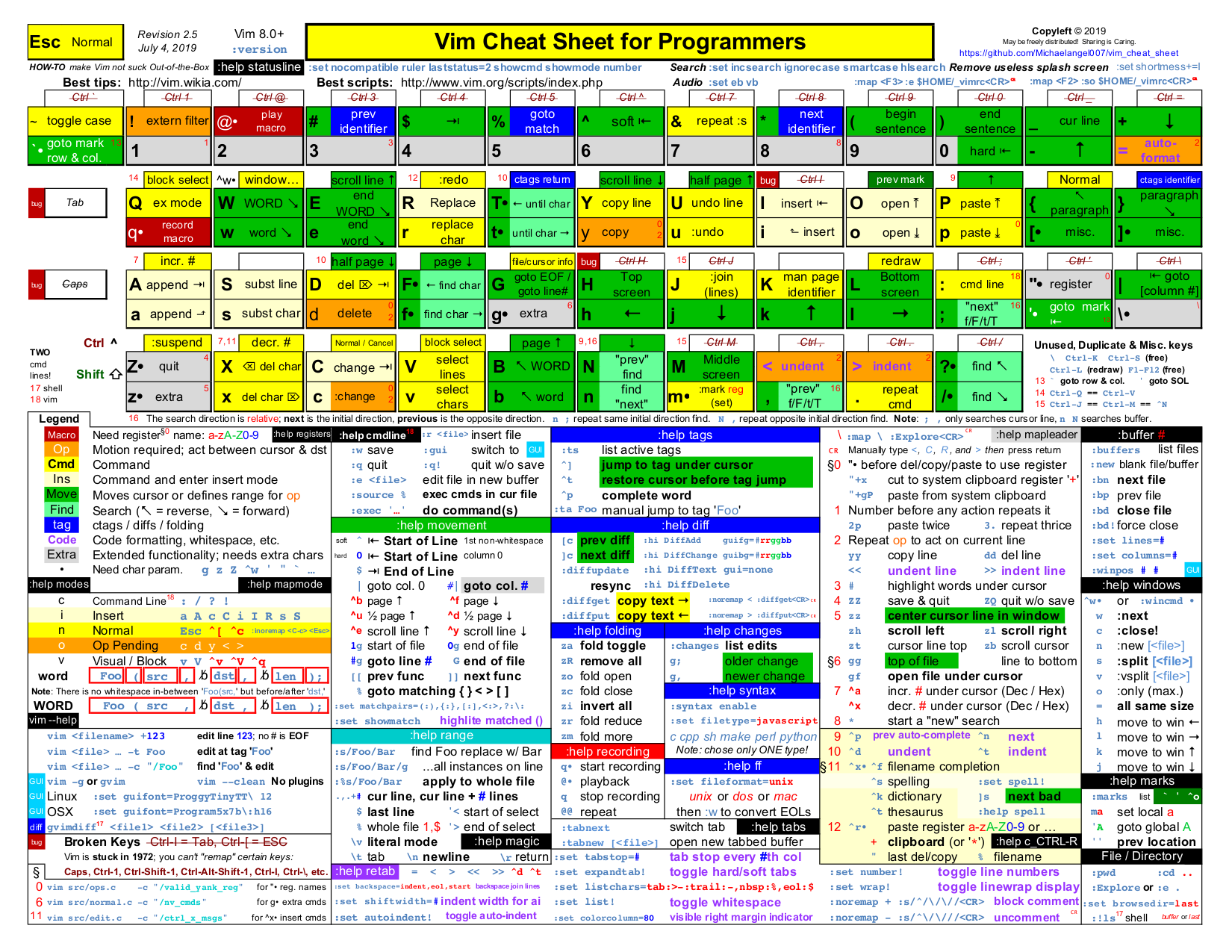 - QuickRef.ME/vim Vim cheatsheet
