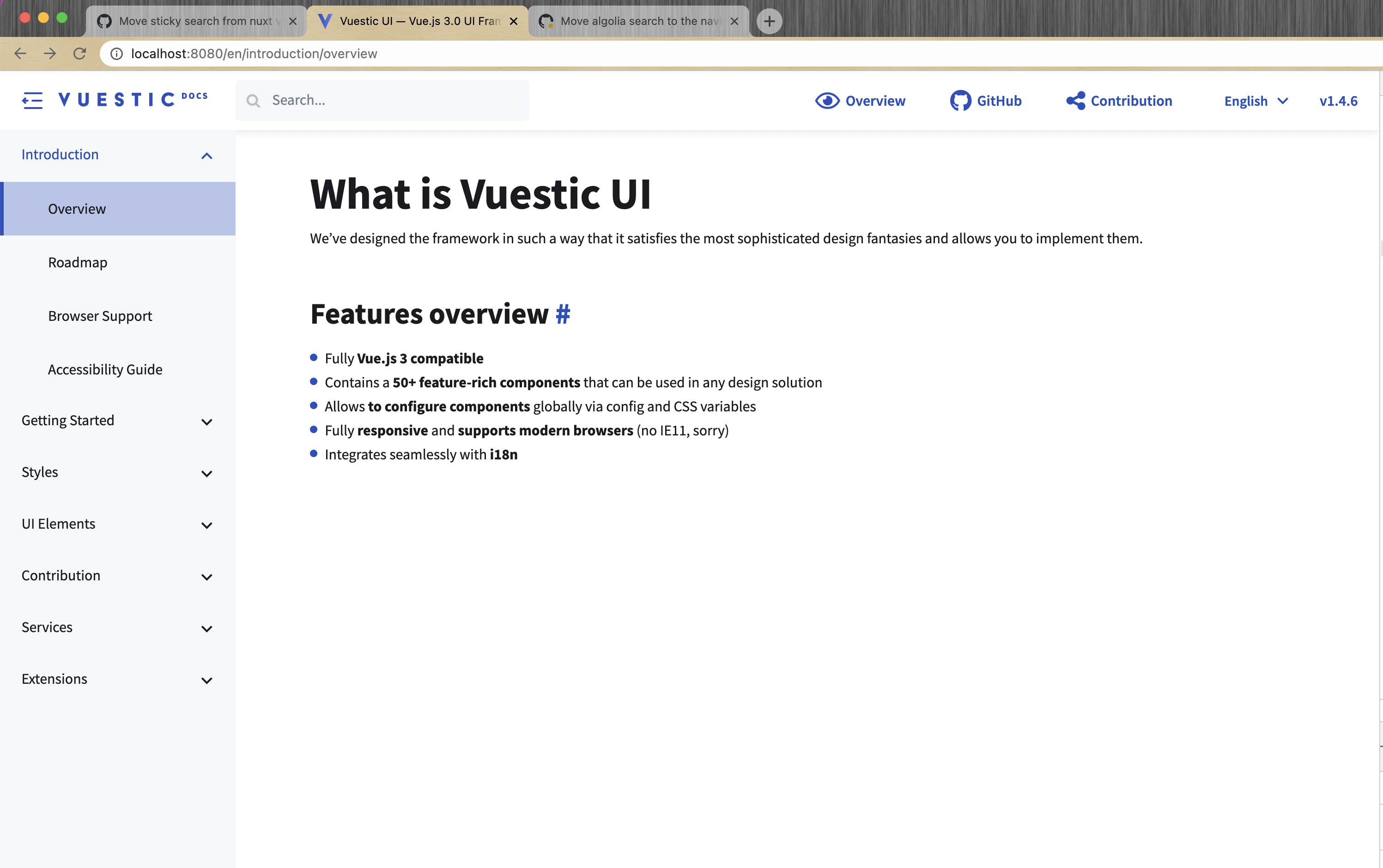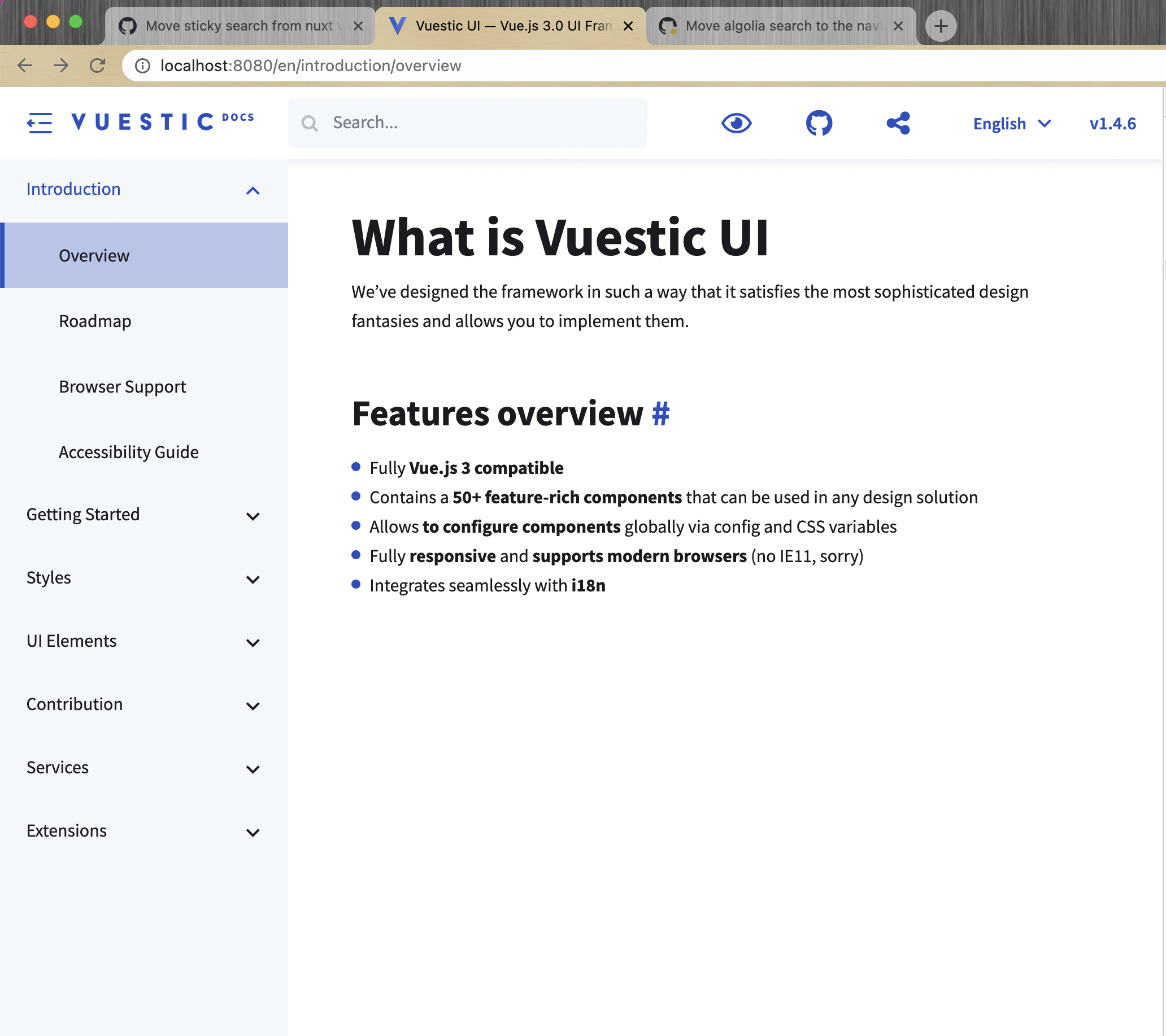 Move Algolia search to the navbar, change header styles