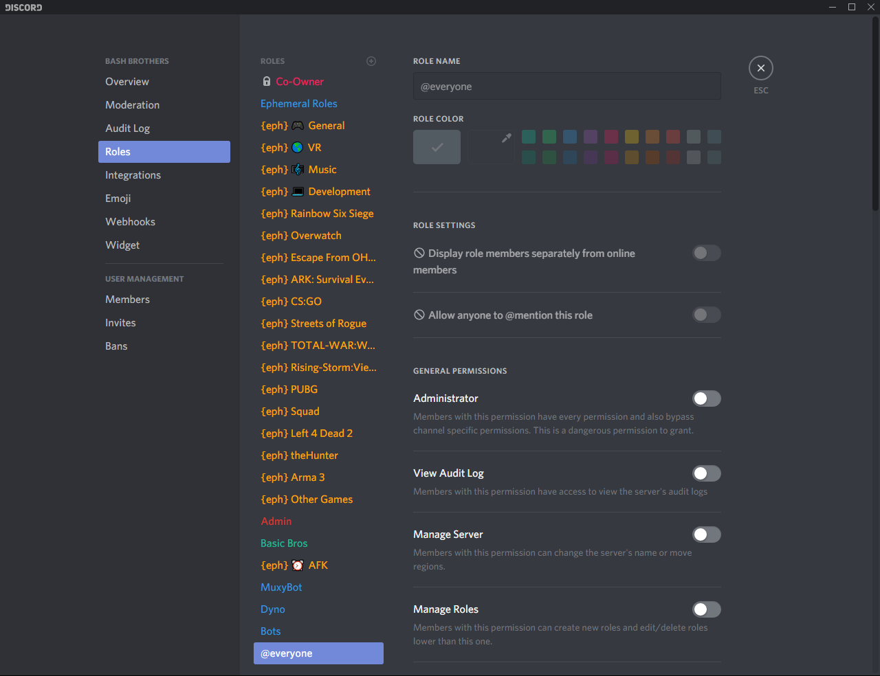 Orange roles below are automatically managed by Ephemeral Roles |