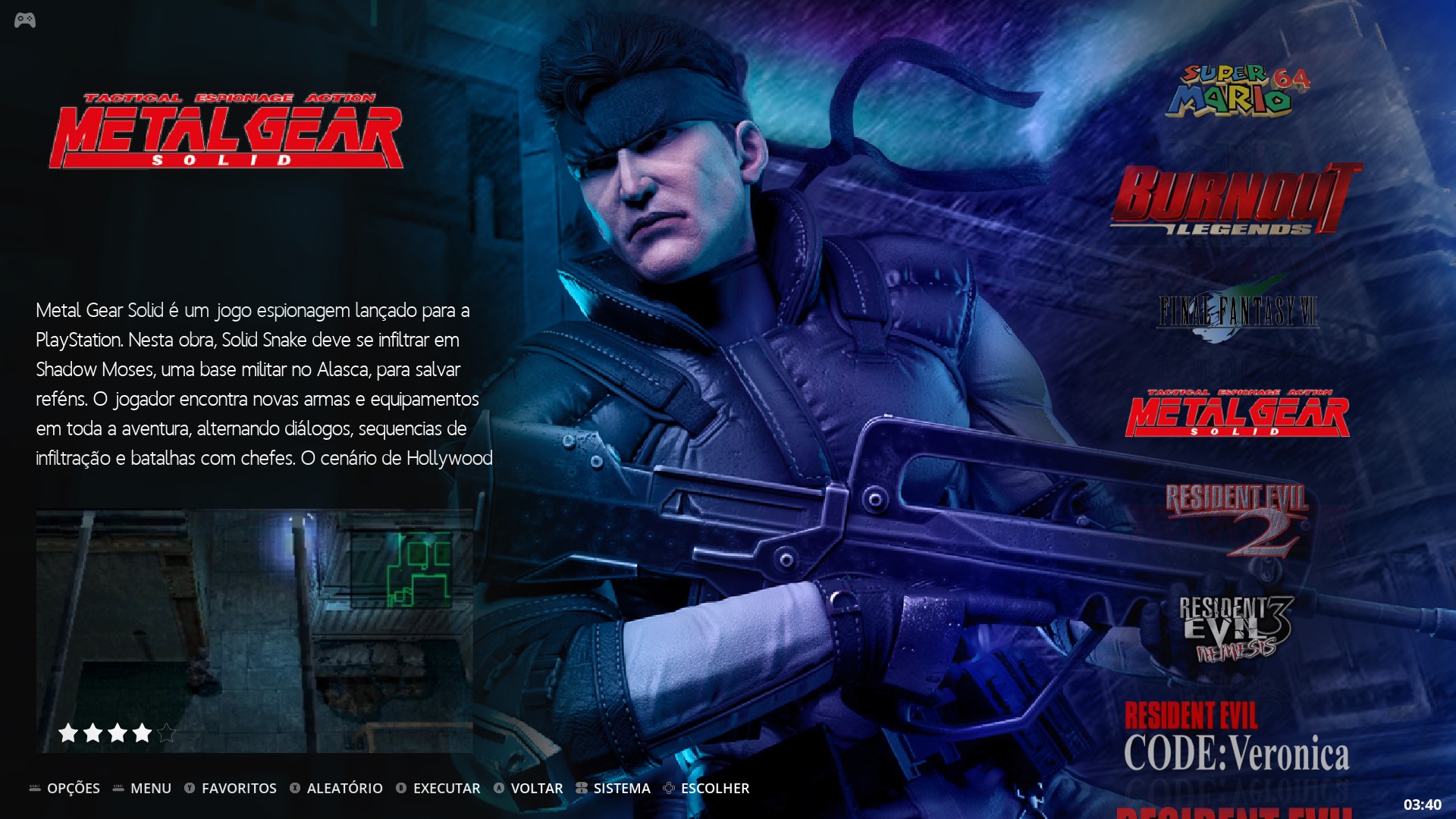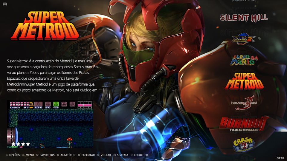 Todas as artes foram feitas do zero - respeitando os jogos icônicos da plataforma representada de forma única. Suporte a todos os sistemas do BATOCERA, EMUELEC, RETROBAT e BATOCERA PLUS.