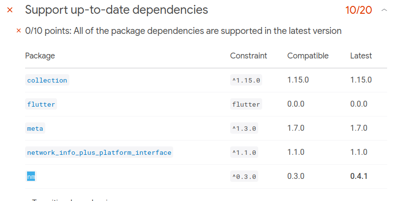 (1) So, because network_info_plus_linux 1.1.0 depends on nm ^0.3.0 and connectivity_plus_linux 1.1.0 depends on dbus ^0.5.1, if network_info_plus_linux 1.1.0 and connectivity_plus_linux >=1.1.0 then dbus ^0.5.1.