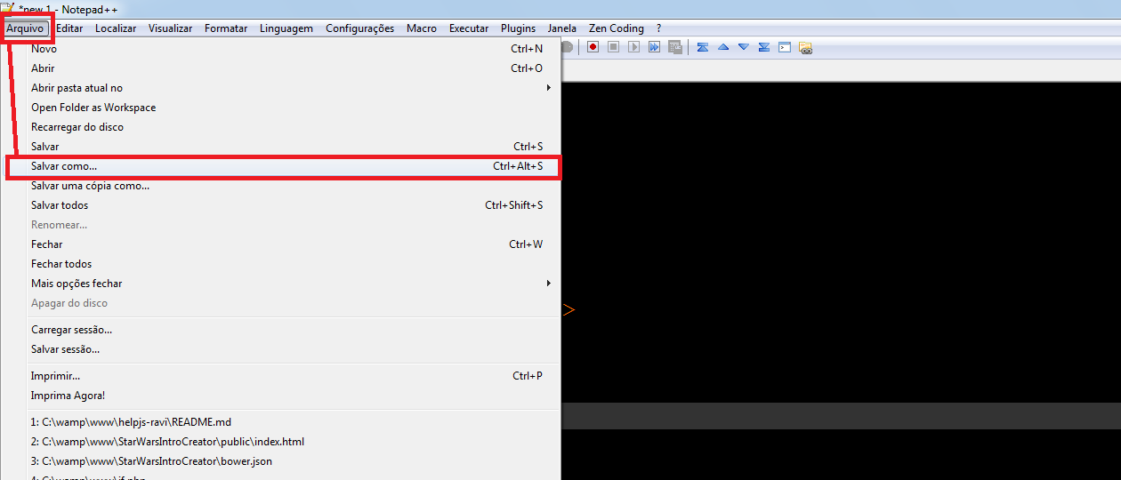 Escolha uma pasta, (de preferencia crie uma para cada exercício. Exemplo: 'ex', 'ex1', ...) )