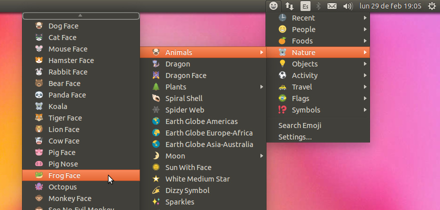 Emojione-picker-Ubuntu is a simple emoji picker for Ubuntu 14.04+ running Unity 7 and some other GNU/Linux distributions and desktop environments.