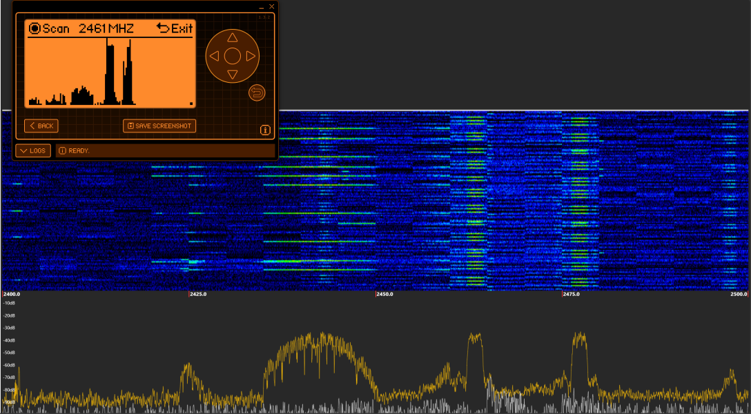 This app will scan all the NRF24's frequencies, and shows where it found any traffic. The more traffic, the higher the bars. After the scanning finished, you can hit left or right keys, to find what frequency is in use.