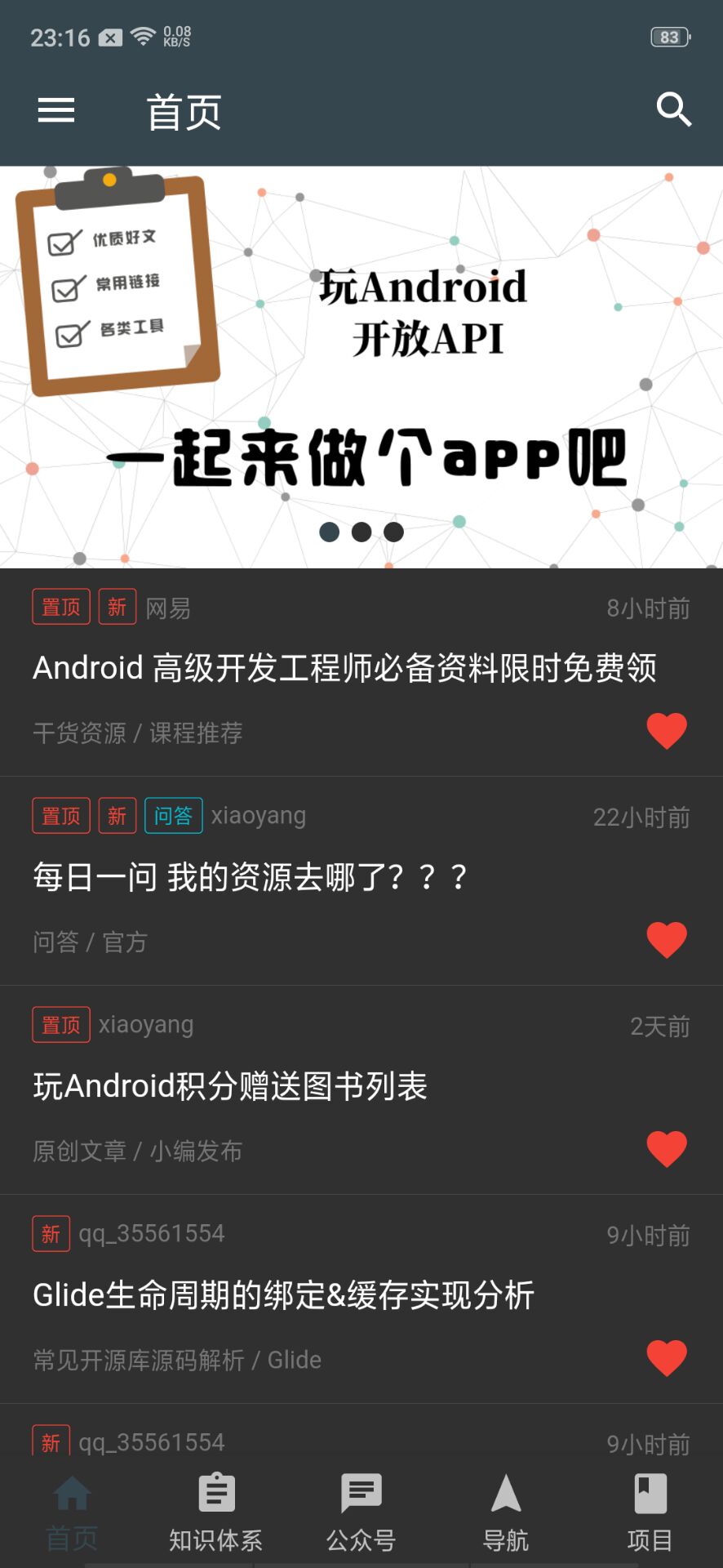 项目是继 Kotlin版玩Android 之后的又一款 [玩Android] APP ,其主要功能以及界面UI风格和 Kotlin版玩Android 基本相同,不过也有一些不一样。
