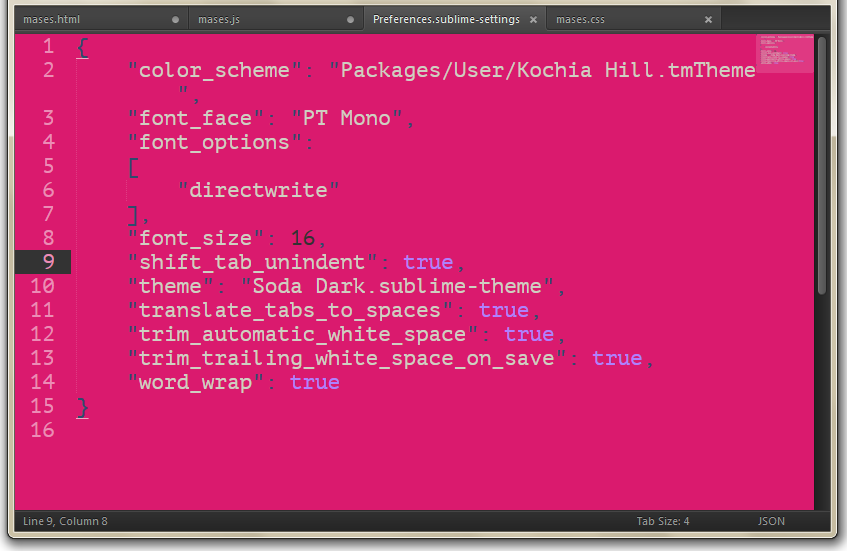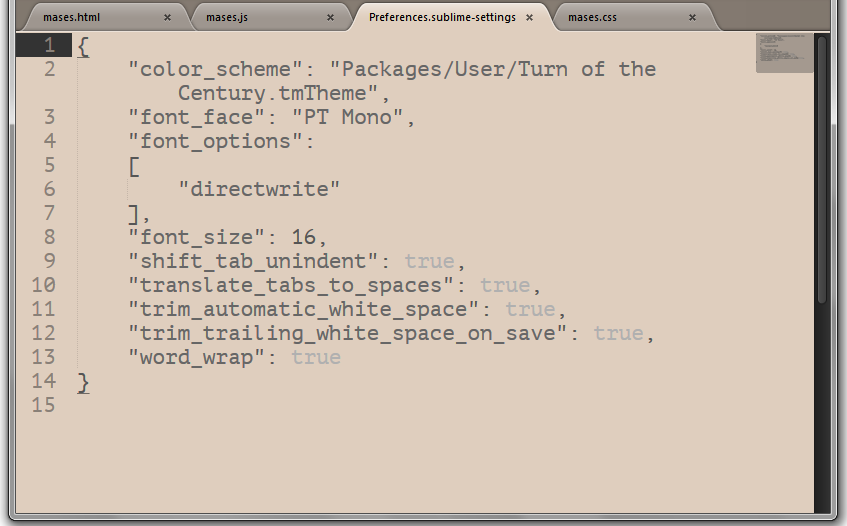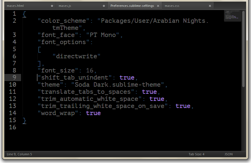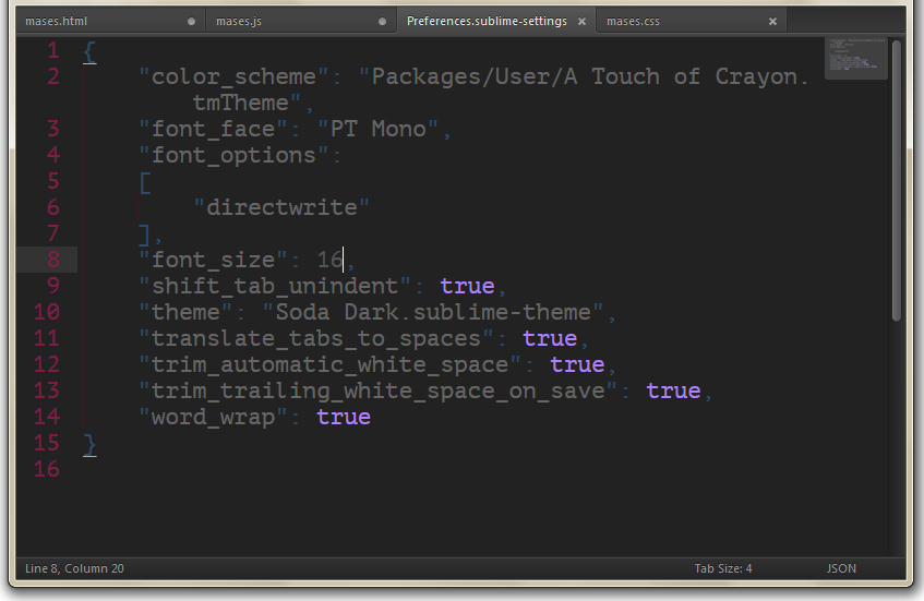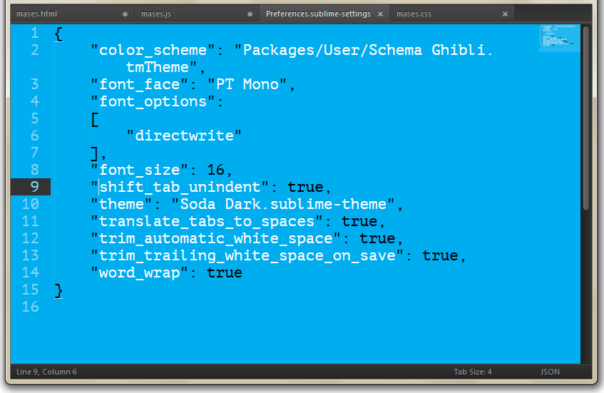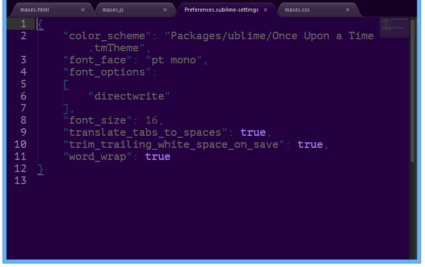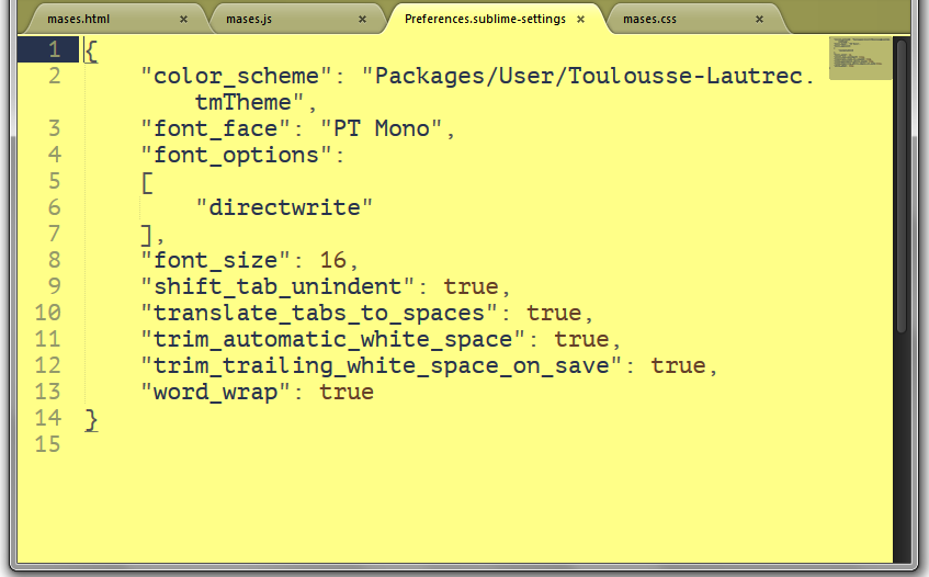 • In the menu go to Preferences > Settings - More > Syntax Specific - User.