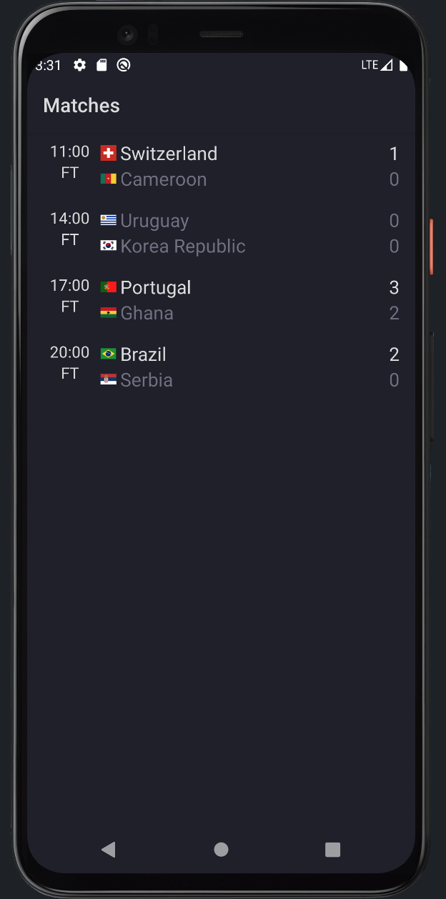 LiveMatch is a fully functional Android where I try to apply some ideas and best practices related to android development while also explore new ideas that only a side project would allow. In this small project you can see How I approach: modularization, dependency injection, unit testing, architecture, UI/UX design, etc.