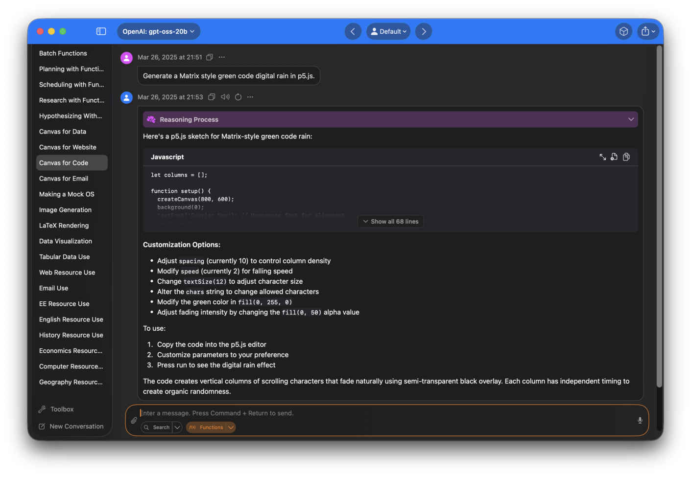 Create, edit and preview websites, code and other textual content using Canvas.