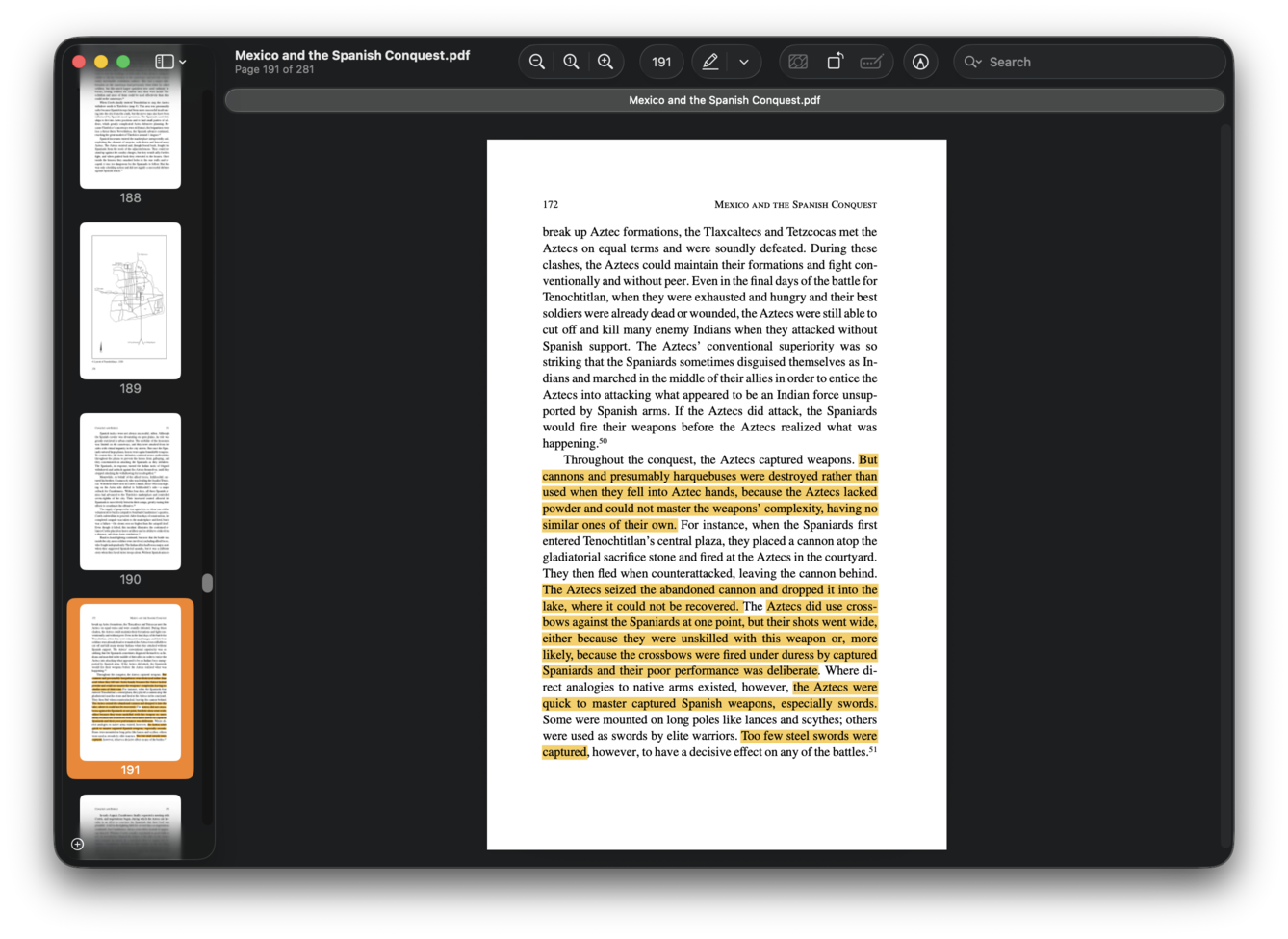 Let’s say you're collecting evidence for a History paper about interactions between Aztecs and Spanish troops, and you’re looking for text about whether the Aztecs used captured Spanish weapons.
