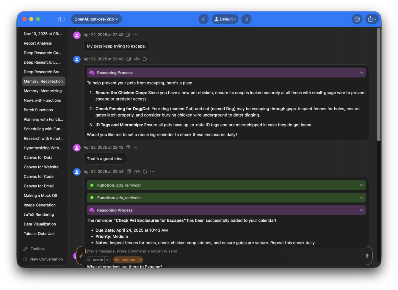 Sidekick can call functions to boost the mathematical and logical capabilities of models, and to execute actions. Functions are called sequentially in a loop until a result is obtained.