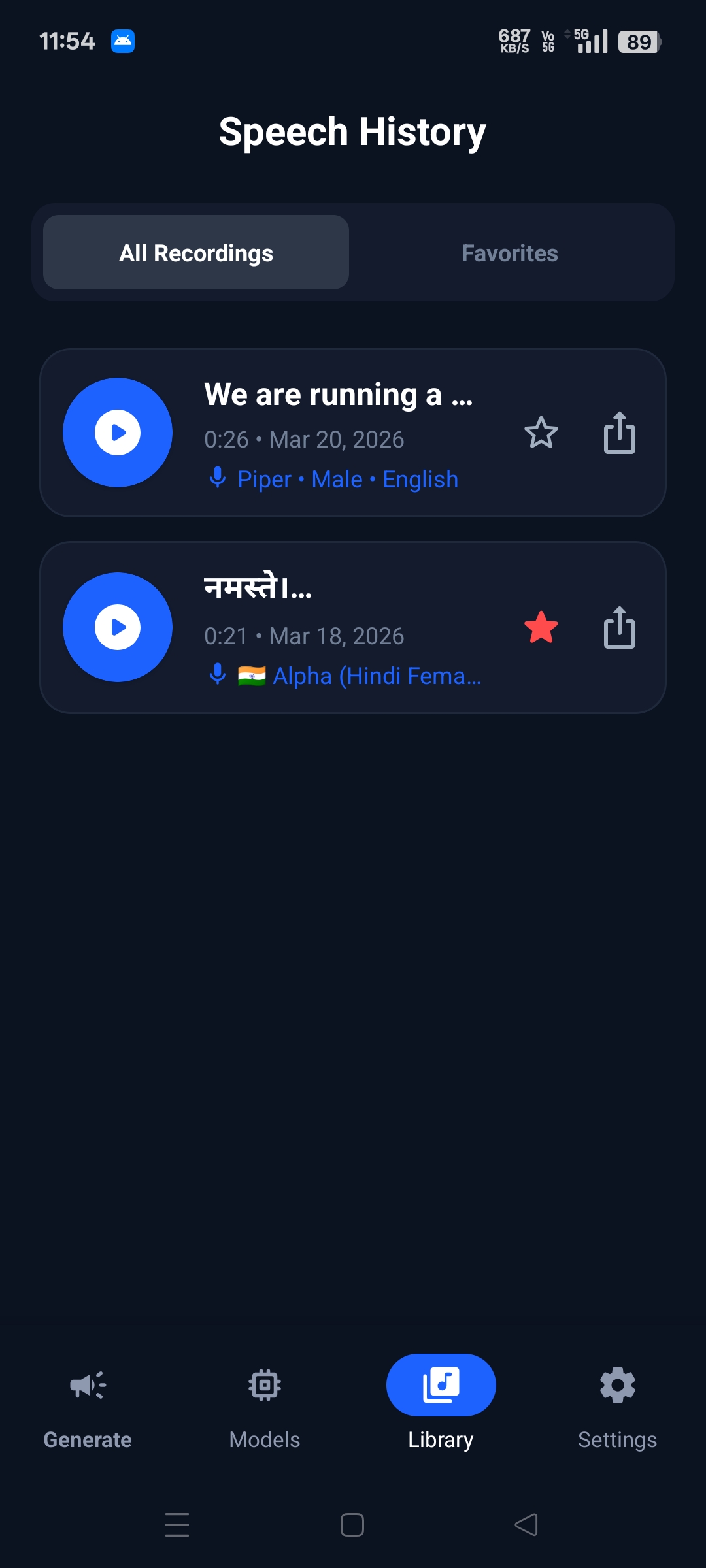VoxSherpa TTS is a 100% offline Android Text-to-Speech app powered by Sherpa-ONNX. It supports Kokoro-82M, Piper, and VITS engines with multilingual support including Hindi, English, British English, Japanese, Chinese and 50+ more languages.