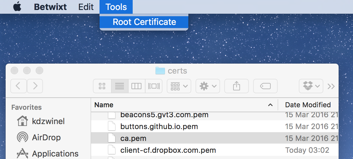 The certificate is generated for you when you first launch Betwixt. You can quickly locate it on disk using Tools > Root Certificate menu.