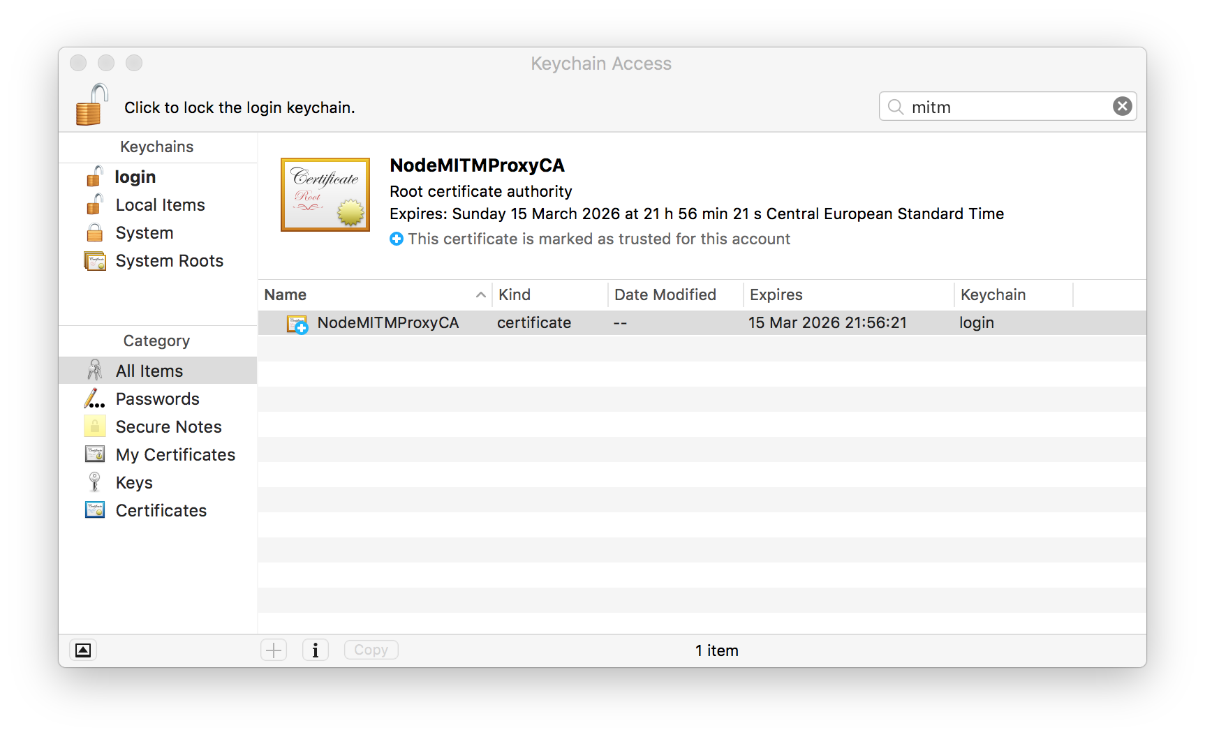 If you want to capture traffic coming from a single terminal use export https_proxy=http://localhost:8008. Note that NodeJS has a hardcoded list of CA certificates so it doesn't care for Keychain/certmgr/etc. You may need to use export NODE_TLS_REJECT_UNAUTHORIZED=0 to overcome this issue.