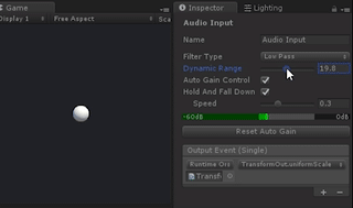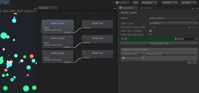 The Audio Input node has a VU meter in the inspector, and it shows how the node analyzes input audio signals and determines output.