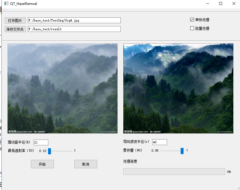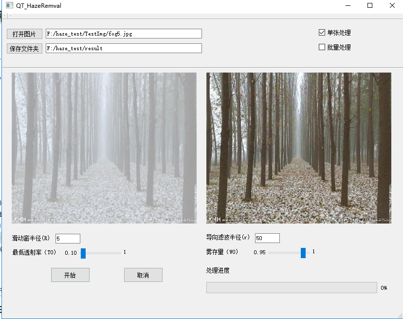 暗通道优先+最小值滤波+导向滤波+Qt界面