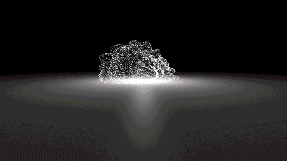 A 3d sound equalizer, exploring perlin noise applied to spherical coordinates with the help of webaudio API. White particles are shaped by the waveform of the sound (or the Fast Fourier Transform), while the red particles are shaped by the frequencies.