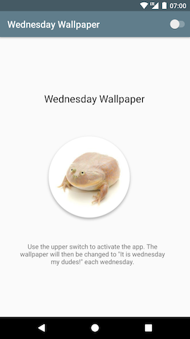 Did you ever wish for an app, which changes your Android device wallpaper to the "It is wednesday my dudes" frog every Wednesday? No? Well, here it is anyway!