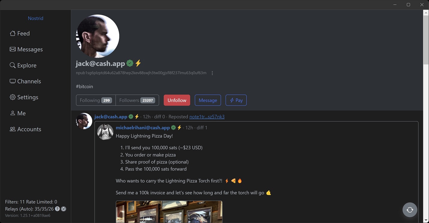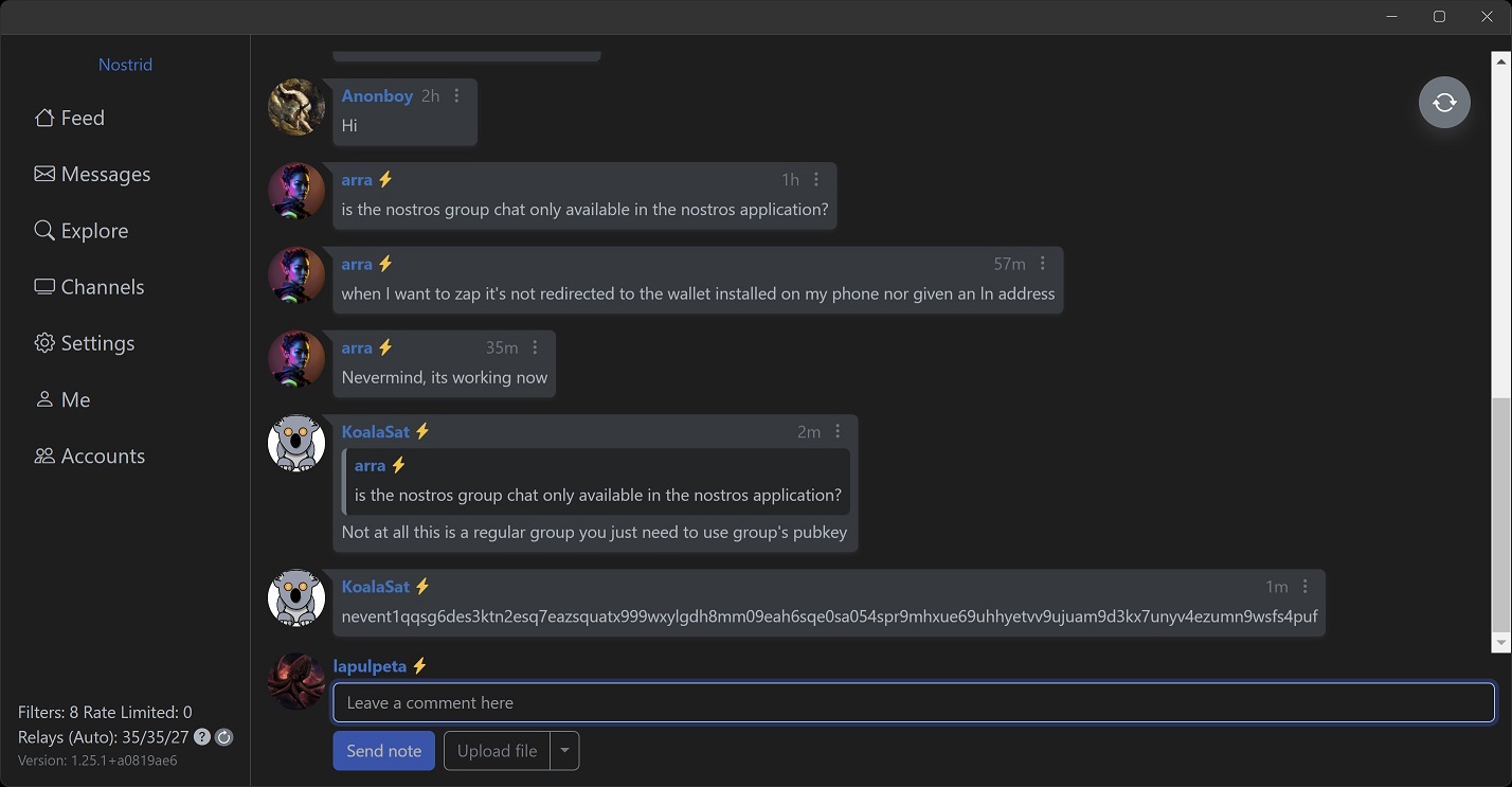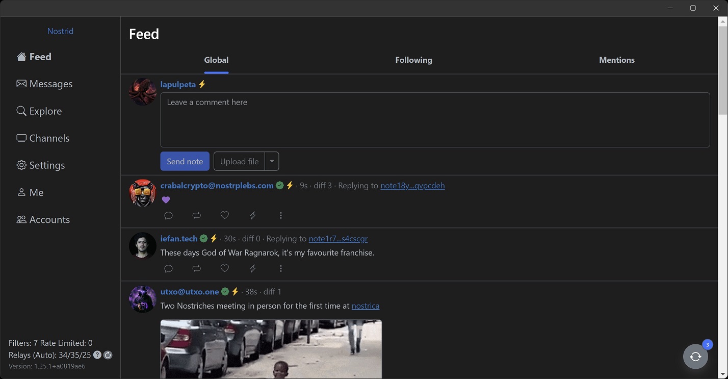 Nostrid is a multi-platform, open-source Nostr client. It is written in .NET and runs in Windows, MacOS, Linux, Android and iOS.