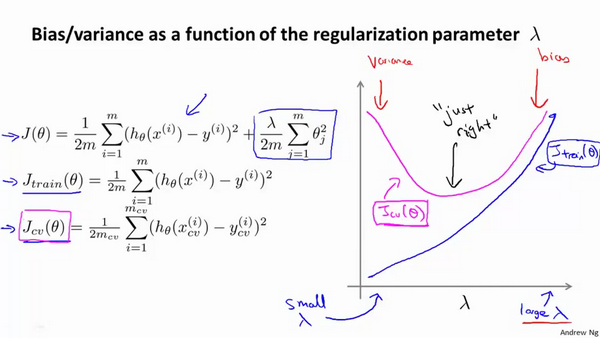 参考视频: 10 - 4 - Diagnosing Bias vs. Variance (8 min).mkv