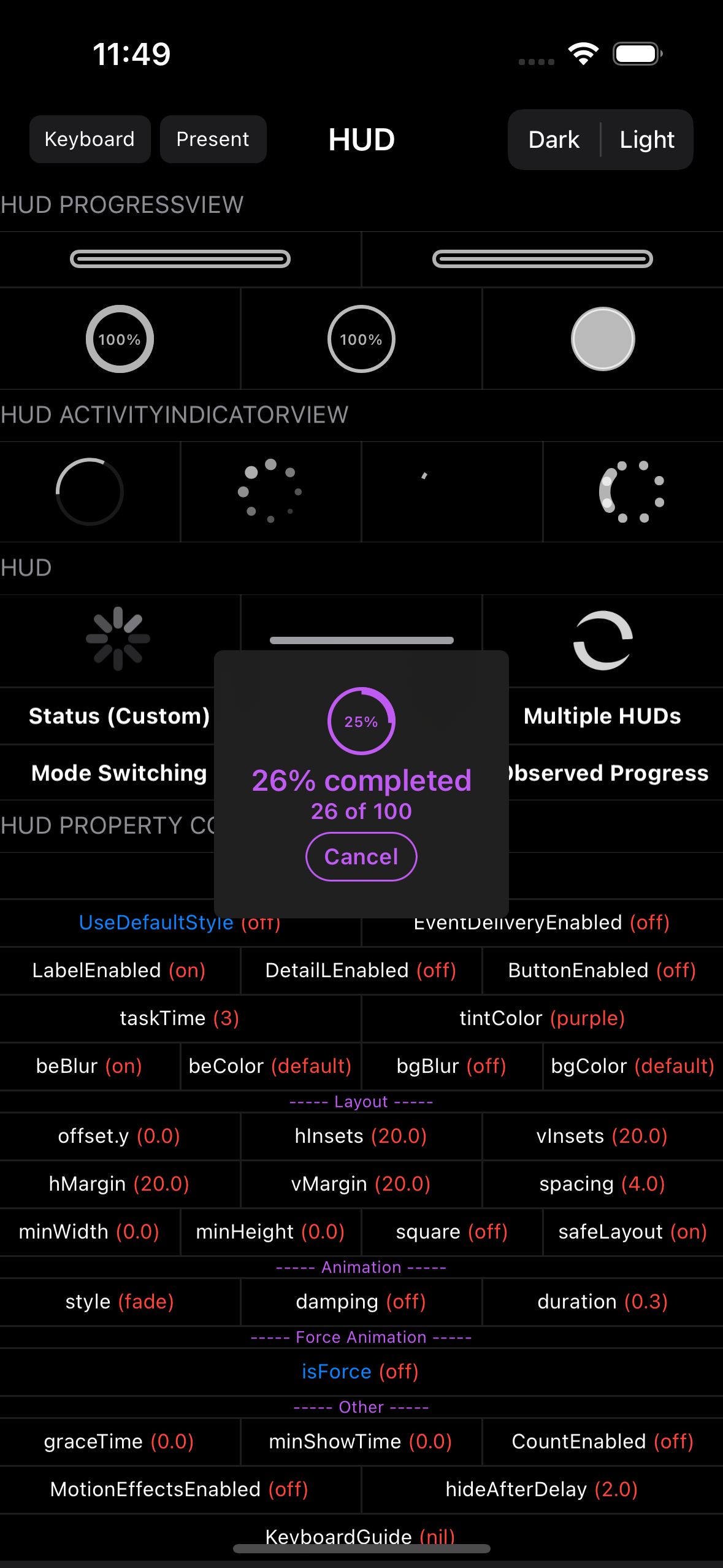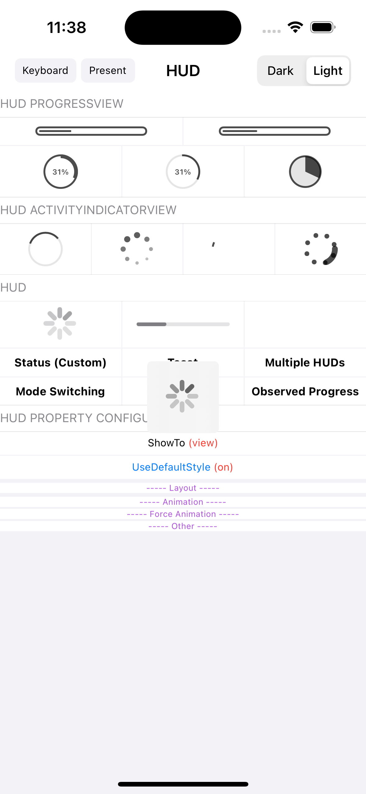 This is a lightweight and easy-to-use HUD designed to display the progress and status of ongoing tasks on iOS and tvOS.