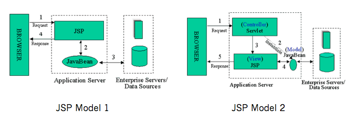 Model 2模式最早在1998年应用在JSP应用程序当中,JSP Model 1应用管理的混乱诱发了JSP参考了客户端MVC模式,催生了Model 2。